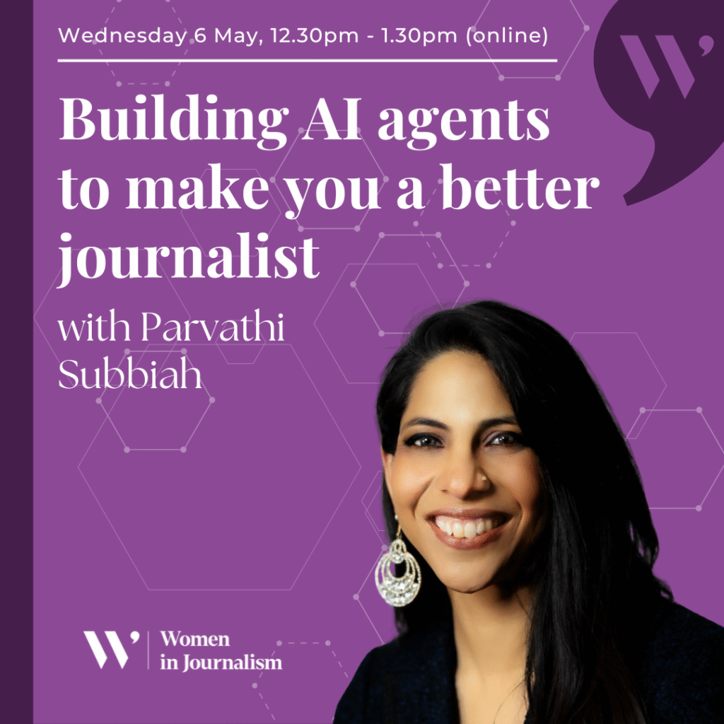 - 6 May Building AI agents to make you a better journalist with Parvathi Subbiah